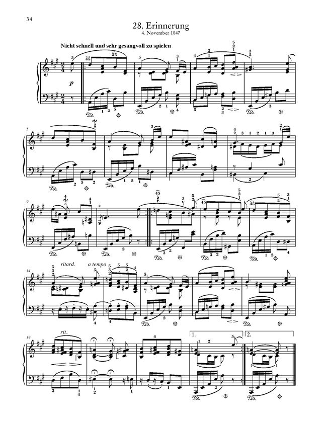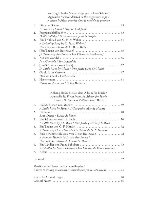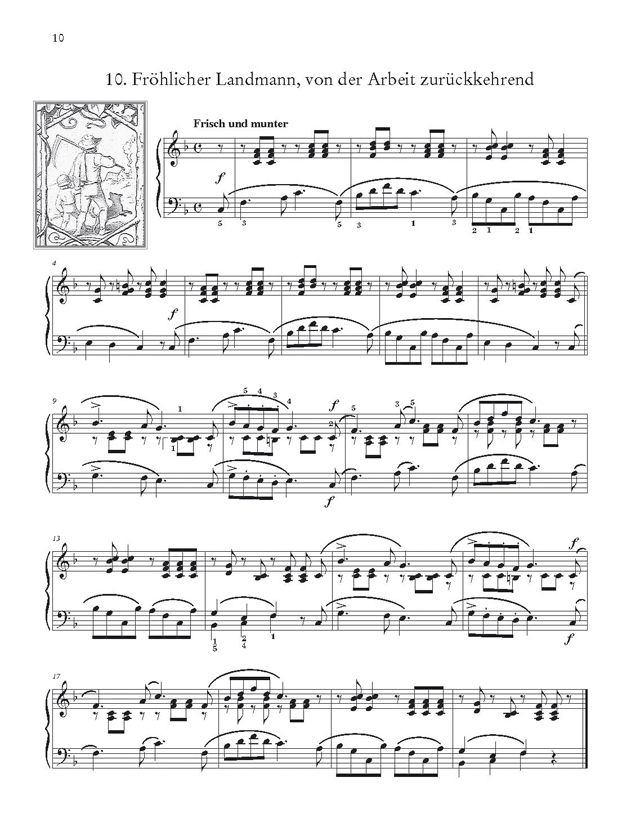 Robert Schumanns Album für die Jugend zählt zu den Meilensteinen pädagogisch inspirierter Klavierliteratur. Dabei stehen nicht planmässige technische Studien im Zentrum, sondern die Entwicklung eines musikalischen Spiels ebenso wie die Umsetzung musikalischer Assoziationen. In dem durchaus progressiv angelegten Werk folgt den Stücken 'Für Kleinere' eine zweite Abteilung 'Für Erwachsenere', die nicht nur spieltechnisch, sondern auch intellektuell die Welt des Kindlichen immer wieder hinter sich lässt (z. B. Mignon). Gerade hier bietet sich ein noch weit unterschätztes Repertoire für erwachsene Wiedereinsteiger, was Schumanns Opus doppeltes Gewicht verschafft. Die revidierte Neuausgabe der Wiener Urtext Edition bringt im Anhang nun auch alle ursprünglich für das Album vorgesehenen Stücke, die letztendlich keinen Eingang in die gedruckte Sammlung fanden. Ergänzt wird der Notenteil um die schon in die frühesten Nachauflagen integrierten 'Musikalischen Haus- und Lebensregeln' des Komponisten samt deren Originalübersetzungen ins Englische und Französische, von denen letztere von keinem geringeren als Franz Liszt stammt.