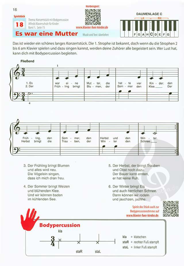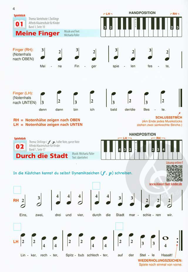 Die deutschsprachige Ausgabe des weltweit erfolgreichen All-In-One Course der 'Alfred Basic Piano Library'. Seit Jahrzehnten international erprobt, gehört sie zu den meistverkauften Klavierschulen der Welt! Die bewährte Methode für junge Einsteiger ist in drei aufeinander aufbauenden Bänden plus Spielbuch erhältlich. Schritt für Schritt lernen Kinder ab 5-6 Jahren das Klavierspiel und werden behutsam an das Notenlesen herangeführt. Übungsstücke, Spielmaterial und Vortragsstücke wie auch musiktheoretische Aspekte mit Aufgaben und Quizspielen ergeben sich logisch aus den Spielstücken. Den Kindern geläufige, populäre englischsprachige Songs wurden mit deutschen Texten versehen oder durch beliebte, deutschsprachige Kinderlieder ersetzt.