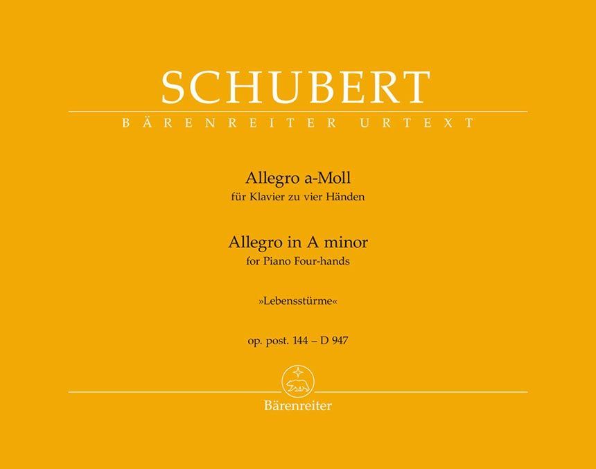 Auf die im April 1828, in Schuberts letztem Lebensjahr, beendete Fantasie f-Moll op. 103 – D 940 folgte bereits im Mai das nicht weniger populäre Allegro a-Moll op. post. 144 – D 947 sowie im Juni das Rondo A-Dur op. 107 – D 951. In der Schubert-Forschung wird vermutet, dass diese Werke Sätze einer dritten, unvollendet gebliebenen vierhändigen Sonate gewesen sein könnten. Ein besonderes Charakteristikum für Schuberts Werke für Klavier-Duo waren von Beginn an orchestrale Effekte. Den Titel "Lebensstürme" erhielt das Allegro a-Moll wohl erst in dem bei Diabelli & Co. 1840 erschienenen Erstdruck mit dem Untertitel "Characteristisches Allegro".
