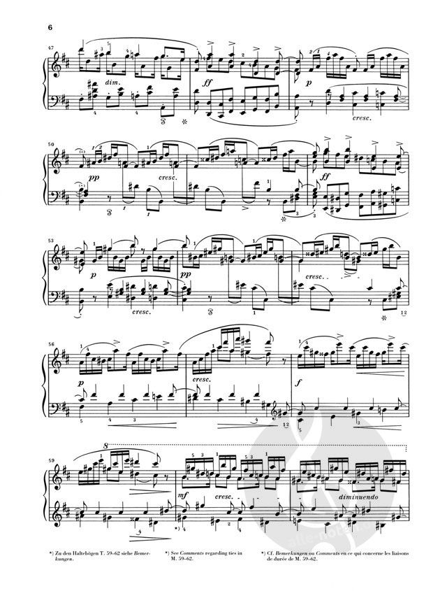 'Überall nur verworrene Kombinationen von Figuren, Dissonanzen, Passagen, kurz für uns eine Folter' - diesen zeitgenössischen Verriss hatte Schumann sicher nicht verdient. Von einer ursprünglich geplanten Sonate veröffentlichte er nur den Kopfsatz 'Allegro di bravura', die restlichen Teile wurden offenbar vernichtet. Clara, die sonst Schumanns frühen Werken eher reserviert gegenüberstand, nahm gerade dieses Stück recht bald in ihr Repertoire auf. Auch die Widmungsempfängerin Ernestine von Fricken, mit der Schumann zur Zeit der Entstehung noch verlobt war, spielte es nach der Trennung oft, wenn auch 'mit ganz eigentümlichem Ausdruck'. Unsere Edition ist das Ergebnis einer gründlichen Revision nach dem jüngsten Stand der Quellenforschung.