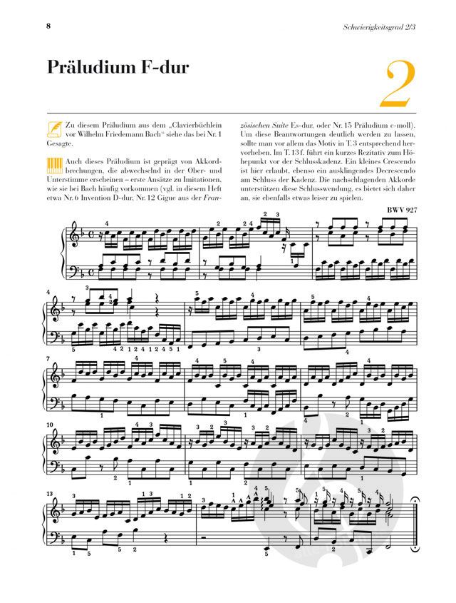 Johann Sebastian Bach stellt gewissermaßen das Alpha und Omega des Klavierspiels dar: kaum ein Klavierschüler, der nicht mit seinen Kleinen Präludien oder Inventionen begonnen hat, und kaum ein Pianist, der nicht das Wohltemperierte Klavier als einen unübertroffenen Höhepunkt der Klaviermusik ansieht. Unser Band vollzieht diesen großen Bogen nach, nicht ohne einige Seitenblicke auf etwas weniger prominente Stücke des Meisters zu werfen, etwa mit dem tonmalerischen Capriccio über die Abreise des geliebten Bruders.
