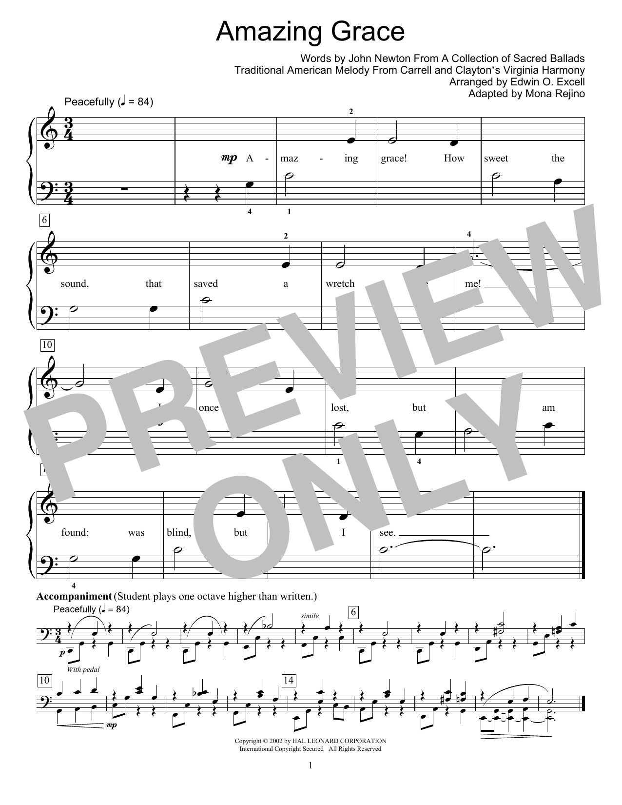 Traditional American Melody, John Newton, Edwin O. Excell