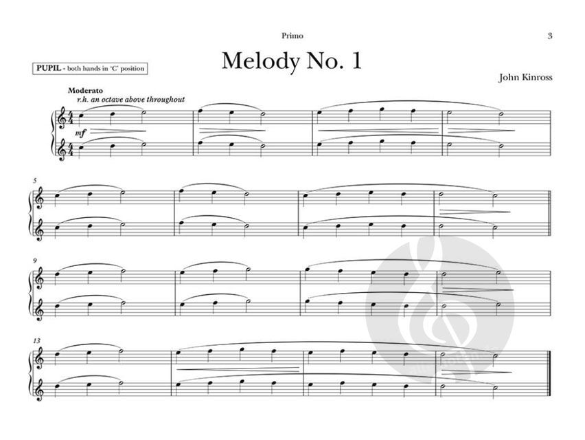 Das Erlernen des Klavierspiels, vor allem in sehr jungen Jahren, kann eine gemeinsame Erfahrung von Schüler und Lehrer sein. Der Klavierlehrer ist in einer einzigartigen Position, um die musikalische Entwicklung durch den Einsatz von Lehrer-Schüler-Duetten direkt zu beeinflussen - Pianisten fast jeden Alters und jeder Entwicklungsstufe bestätigen, dass das Ensemblespiel eine der anregendsten musikalischen Erfahrungen ist. Die "ungleiche" musikalische Erfahrung Es ist viel hervorragende Duettmusik geschrieben worden, bei der der Schülerpart auf einem "Anfänger"-Niveau und der Lehrerpart auf einem viel fortgeschritteneren Niveau ist. Die musikalische Gesamtwirkung ist wesentlich befriedigender als das, was der Schüler allein erreichen kann, und bietet einen echten Anreiz für den Schüler, die anspruchsvollen Klänge der fortgeschritteneren Musik zu hören und zu erzeugen. Es ist ein "Vorgeschmack" auf kommende musikalische Genüsse. Die für Stufe 1 verwendeten Parameter Die Schülerstimmen in diesem Band werden vollständig in der Fünf-Finger-Position gespielt. Die Hände bewegen sich größtenteils parallel zueinander, wobei die Rhythmen allmählich (aber behutsam) komplexer werden. Die ersten Duette werden in ganzen Notenwerten notiert, um dann zu den häufig verwendeten Unterteilungen des Taktes überzugehen. Die ersten Duette in diesem Band sind sehr einfach, aber die Rhythmen am Ende des Bandes sind deutlich anspruchsvoller. Ein Solostück auf diesem Niveau deckt eindeutig eine größere Bandbreite an Noten ab, aber es gibt viele andere musikalische Themen, die kultiviert werden können. Einige Schüler werden diese Duette als anspruchsvolles Material empfinden, das über mehrere Unterrichtsstunden hinweg erlernt werden muss; andere werden sie als unterhaltsames Material zum Blattspiel empfinden. In jedem Fall werden die Schüler viele zusätzliche Fähigkeiten als Duettisten erlernen - insbesondere das musikalische Konzept des dynamischen Gleichgewichts sowohl zwischen den Spielern als auch zwischen den beiden Händen eines jeden Spielers. Das Ziel dieses Bandes ist es, eine sich allmählich entwickelnde Ensembleerfahrung zu bieten und gleichzeitig einen guten Rhythmus zu trainieren. Die Tonhöhe sollte kein besonderes Problem darstellen. Graeme Humphrey