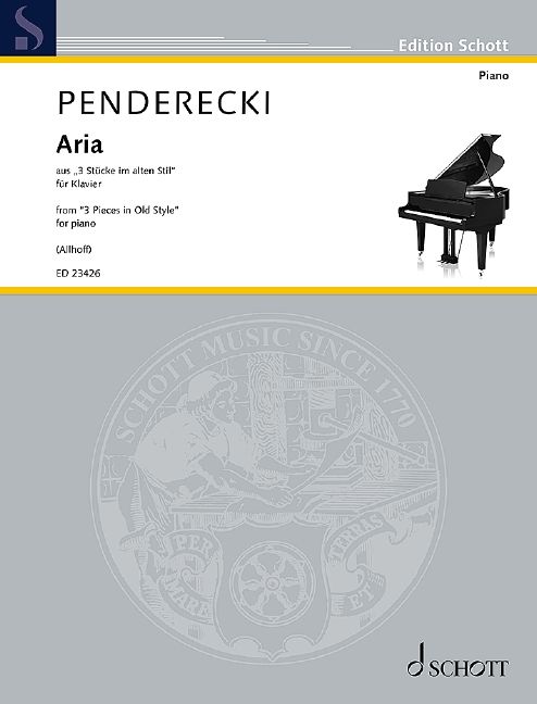 Der deutsche Jazz-Pianist und Echo-Preisträger Tim Allhoff präsentiert mit seinem Arrangement von Pendereckis 'Aria' ein schlichtes, von einer zeitlosen Eleganz geprägtes Klavierstück, dass sowohl für Anfänger als auch für fortgeschrittene Klavierspieler eine willkommene Bereicherung des Repertoires darstellt. Die Einspielung der Bearbeitung erschien bei 2020 bei Sony Music.