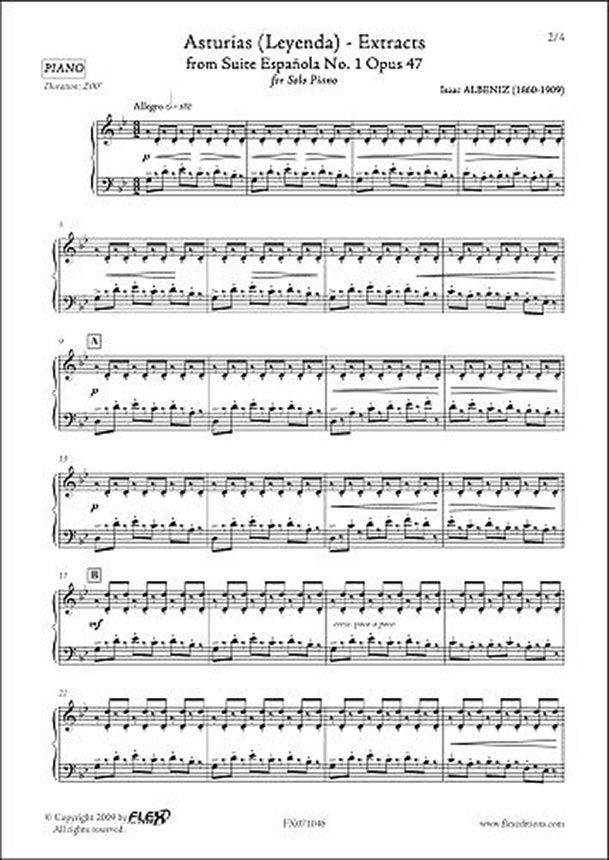 With this famous spanish 'Legend', the piano sound must be as close as possible to guitar. The right hand will be, for the repeated notes, slightly suspended above the left hand, and right in the middle of the black keys [...] In this piece, a special care must to taken to put into relief the character and colors of Spain.