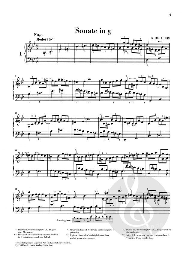 Domenico Scarlatti gilt heute als einer der großen Klavierkomponisten der Musikgeschichte und als der erste Virtuose am Klavier überhaupt. Diese Auswahl enthält 24 Sonaten aus verschiedenen Schaffensperioden und bietet somit einen Überblick über den Variantenreichtum des Italieners, der am spanischen Hof wirkte. Mit charakteristischen Themen, liedhaft natürlichen Melodien und tänzerischen Bewegungsfiguren überwindet Scarlatti alle barocke Schwere. Das spieltechnische Moment ist bei seinen einsätzigen Sonaten formbildend. Zum ersten Mal in der Geschichte der Klaviermusik muss der Spieler hier weite Sprünge und Kreuzungen der Hände bewältigen. Das Vorwort des renommierten Pianisten Bengt Johnsson gibt Auskunft über Scarlattis Werdegang und die verschiedenen Quellen, auf denen diese Ausgabe basiert. Einige Sonaten erscheinen hier erstmals im Druck. Als zusätzliches Bonbon ist eine Vorrede im Original abgebildet, die 1738 einer Notenausgabe von 30 Klaviersonaten Scarlattis vorangestellt war. Sie ist für das Verständnis von Scarlattis Klaviermusik sehr aufschlussreich.