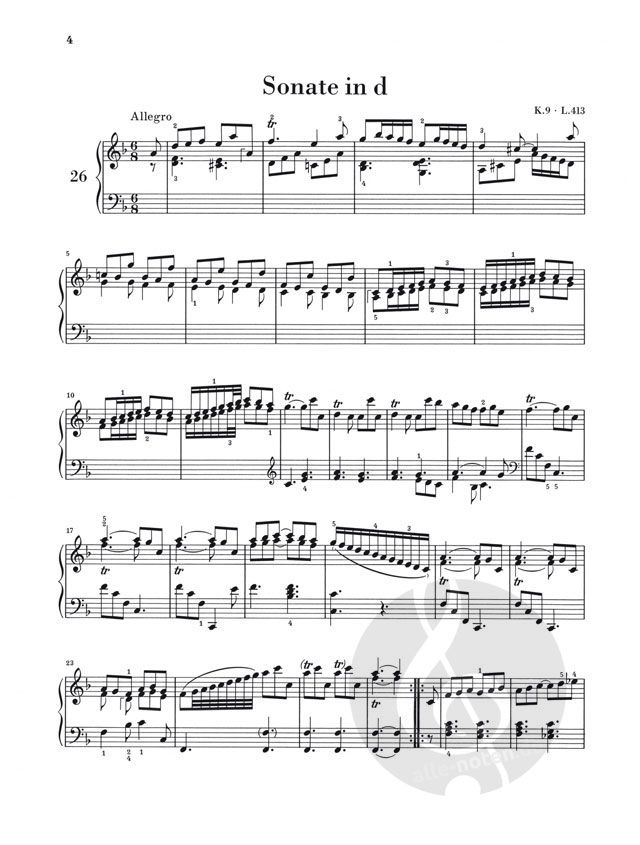 Domenico Scarlatti gilt heute als einer der großen Klavierkomponisten der Musikgeschichte und als der erste Virtuose am Klavier überhaupt. Diese Auswahl enthält 24 Sonaten aus verschiedenen Schaffensperioden und bietet somit einen Überblick über den Variantenreichtum des Italieners, der am spanischen Hof wirkte. Mit charakteristischen Themen, liedhaft natürlichen Melodien und tänzerischen Bewegungsfiguren überwindet Scarlatti alle barocke Schwere. Das spieltechnische Moment ist bei seinen einsätzigen Sonaten formbildend. Zum ersten Mal in der Geschichte der Klaviermusik muss der Spieler hier weite Sprünge und Kreuzungen der Hände bewältigen. Das Vorwort des renommierten Pianisten Bengt Johnsson gibt Auskunft über Scarlattis Werdegang und die verschiedenen Quellen, auf denen diese Ausgabe basiert. Einige Sonaten erscheinen hier erstmals im Druck. Als zusätzliches Bonbon ist eine Vorrede im Original abgebildet, die 1738 einer Notenausgabe von 30 Klaviersonaten Scarlattis vorangestellt war. Sie ist für das Verständnis von Scarlattis Klaviermusik sehr aufschlussreich.