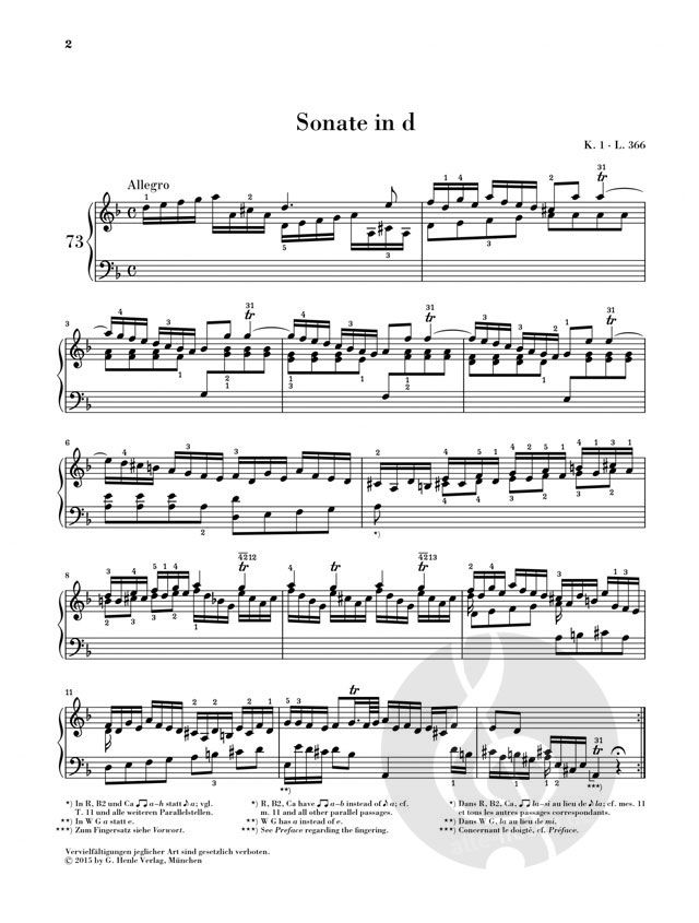 > Großer Fußnotenapparat mit Darstellung der Varianten, der die disparate Scarlatti-Überlieferung widerspiegelt