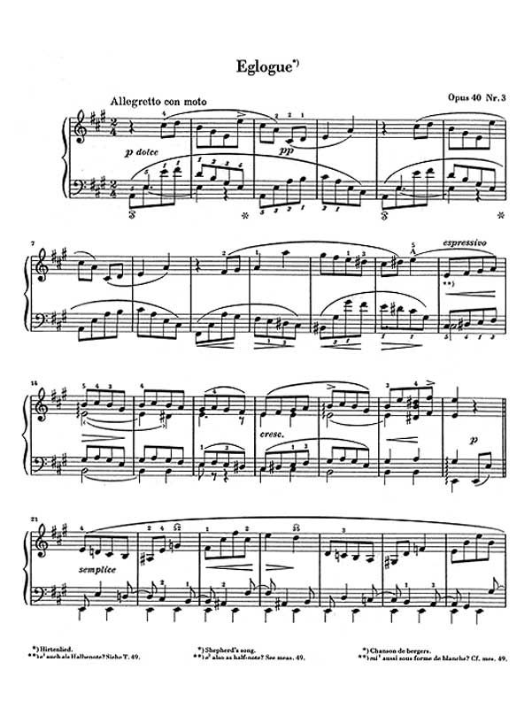 In diesem Band finden sich lauter kleine, aber feine Klavierhäppchen von Stephen Heller, einem Komponisten des 19. Jahrhunderts, die überwiegend nur mittelschwer zu spielen sind, klanglich aber immer von besonderem Reiz. Heller schrieb 1853 an seinen Verleger, er habe 'nicht gesucht, viele Worte zu machen', sondern er wolle 'etwas Erhebliches, Sinniges in wenigen Strichen' andeuten. Dieser Band gibt Einblick in die künstlerische Entwicklung Hellers und widmet sich ganz dem 'Charakterstück', das einen Großteil seines kompositorischen Schaffens ausmacht. Dazu gehören Werke wie beispielsweise 'Die kleine Bettlerin', 'Nach erquickender Rast' oder 'Weinendes Kind', also Szenen, die eine besondere Stimmung ausdrücken und hervorrufen. Die Musik Hellers lässt, wie Ursula Kersten im Vorwort schreibt, bereits den 'Impressionismus erahnen', und es lohnt sich, den Komponisten mithilfe dieses Bandes näher kennenzulernen.
