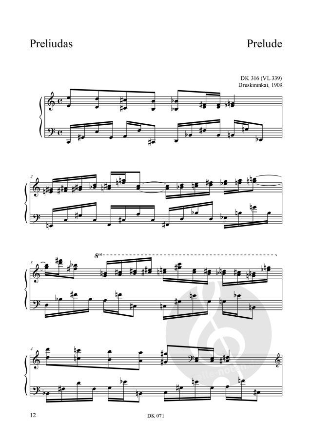 Hier finden Sie Kompositionen des berühmtesten litauischen Komponisten und Malers Mikalojus Konstantinas Čiurlionis (1875-1911). Seine Musik ist zum Teil im spätromantischen Stil geschrieben, aber vor allem für die Entdeckungen des Komponisten im Proto-Serialismus und Konstruktivismus in den ersten Jahren des 20. Jahrhunderts (seine seriellen Kompositionen entstanden in den Jahren 1904-1906). Diese Ausgabe, die in zwei Notizbüchern besteht, enthält alle Stücke, die für den Internationalen Klavier- und Orgelwettbewerb M. K. Čiurlionis in Vilnius, Litauen, angefordert wurden. Die Urtexte wurden von dem Musikwissenschaftler Darius Kučinskas nach Manuskripten herausgegeben, die sich im Nationalen Kunstmuseum Čiurlionis in Kaunas befinden.