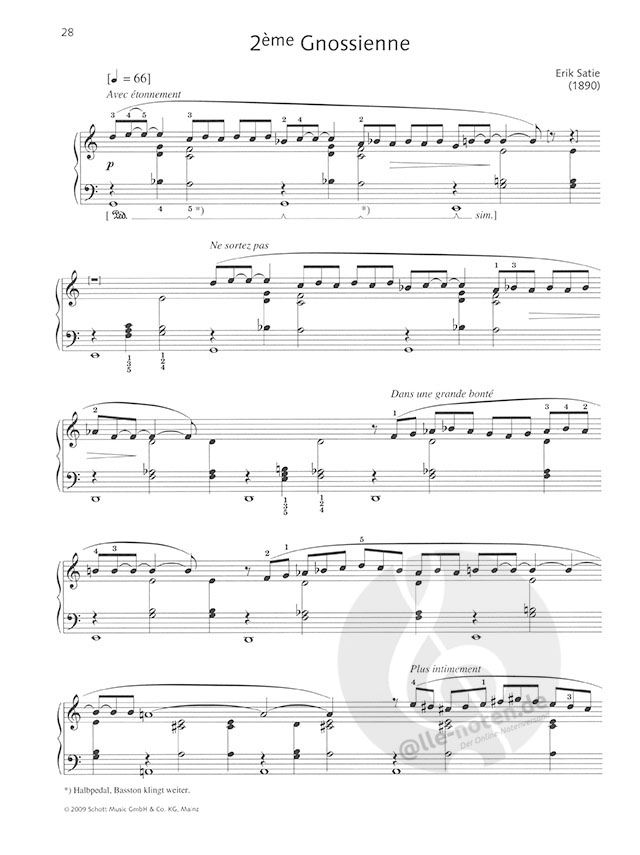 Dieser Band bietet eine Auswahl der bekanntesten und beliebtesten Stücke Saties, unter anderem die 'Gymnopédies' und 'Gnossiennes', enthält aber auch zwei Jugendwerke (1885), Kompositionen aus der neogregorianischen Epoche (1888-93) und aus der Welt des Kabaretts (1897-1904) sowie zwei Miniaturen aus dem Jahre 1913.