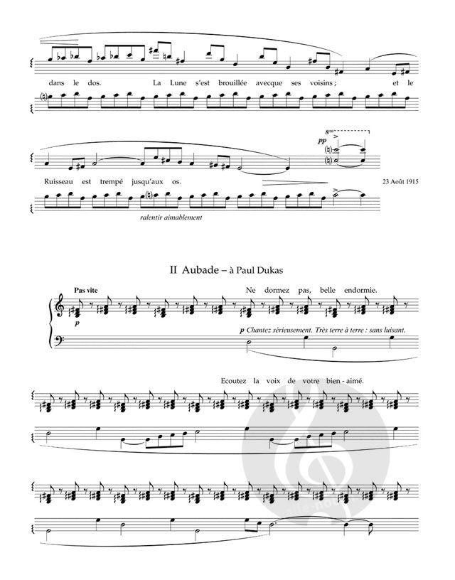 Auch der atmosphärische Zyklus 'Vorletzte Gedanken' von 1915 gehört mit unterlegten Textphrasen dem Typus von Saties 'Story-Stücken' an. Die kuriosen Spielanweisungen der drei auf Ostinato-Figuren beruhenden Miniaturen karikieren unterhaltsam das Ideal romantischer Expressivität.