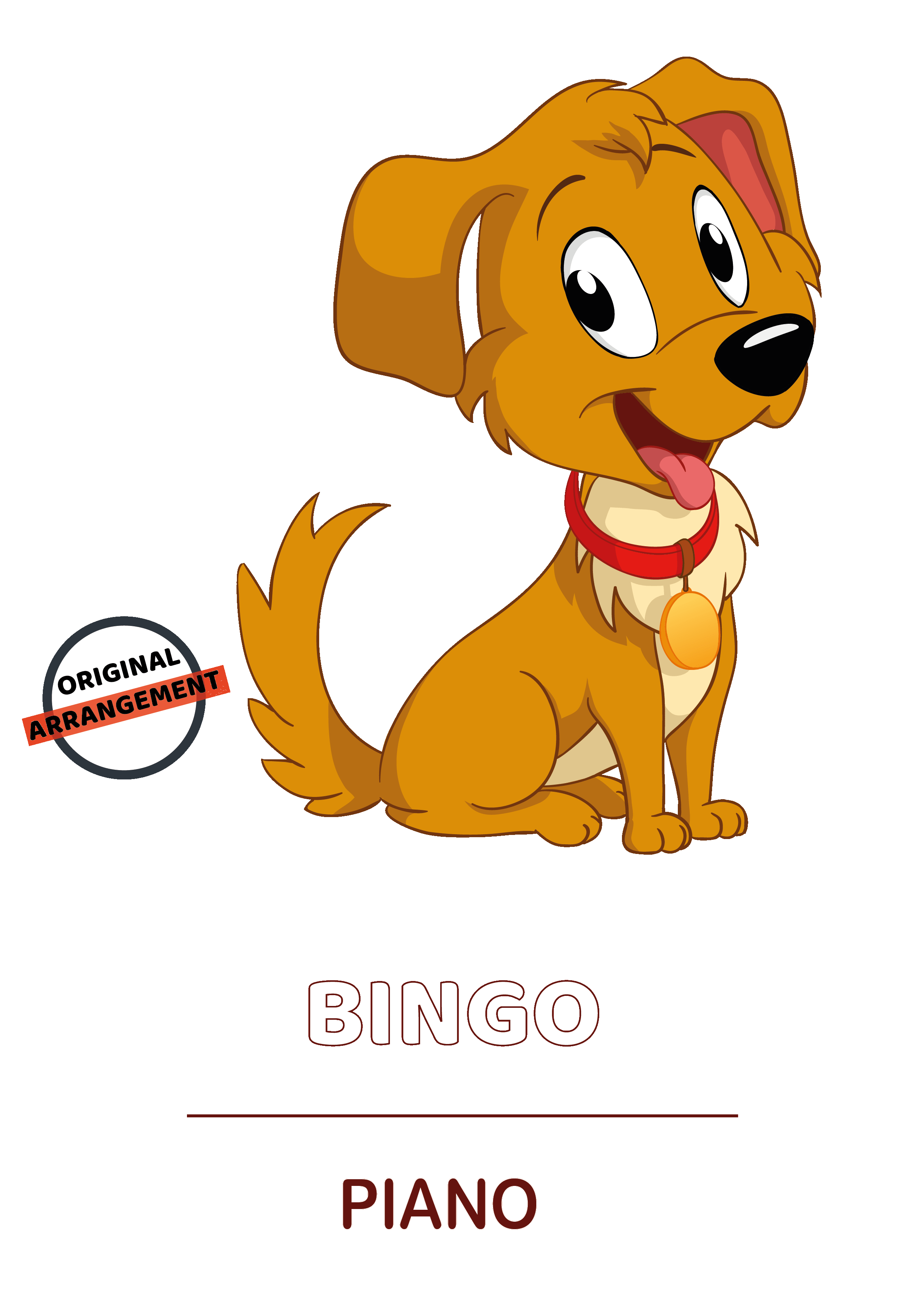 Dieses Notenheft enthält die Originalnoten zum Kinderlied "BINGO" für Klavier. Leichter Schwierigkeitsgrad in F-Dur.