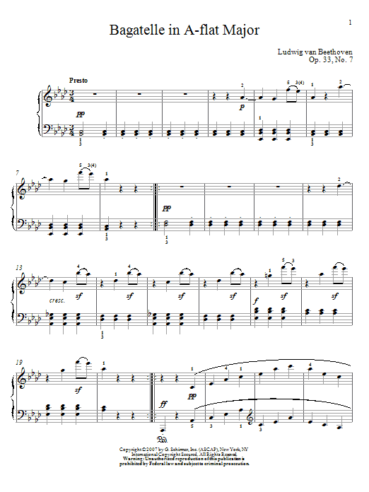 Bagatelle In A-flat Major, Op. 33, No. 7