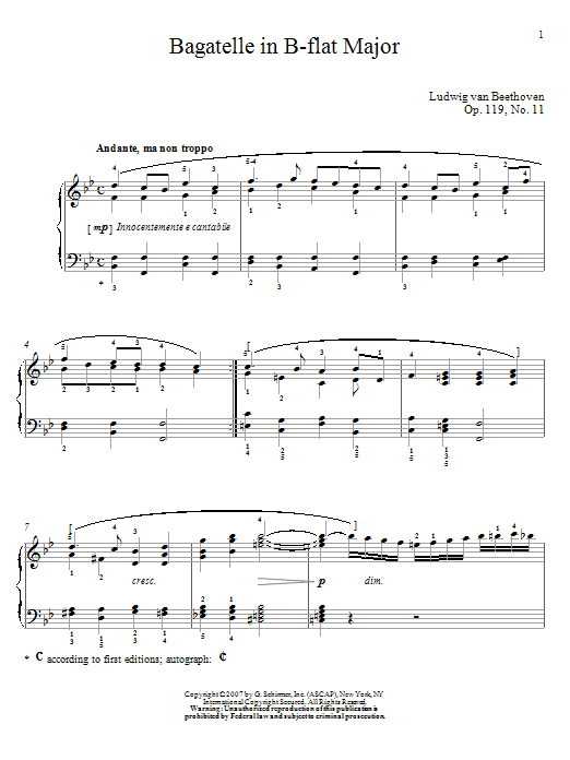 Bagatelle In B-flat Major, Op. 119, No. 11