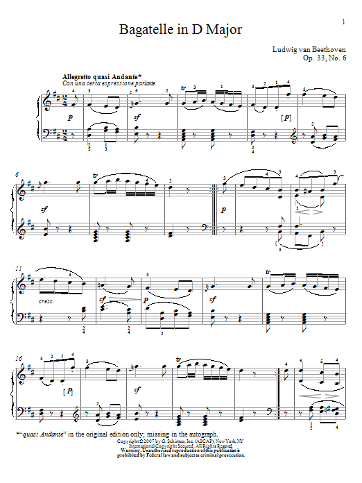 Bagatelle In D Major, Op. 33, No. 6