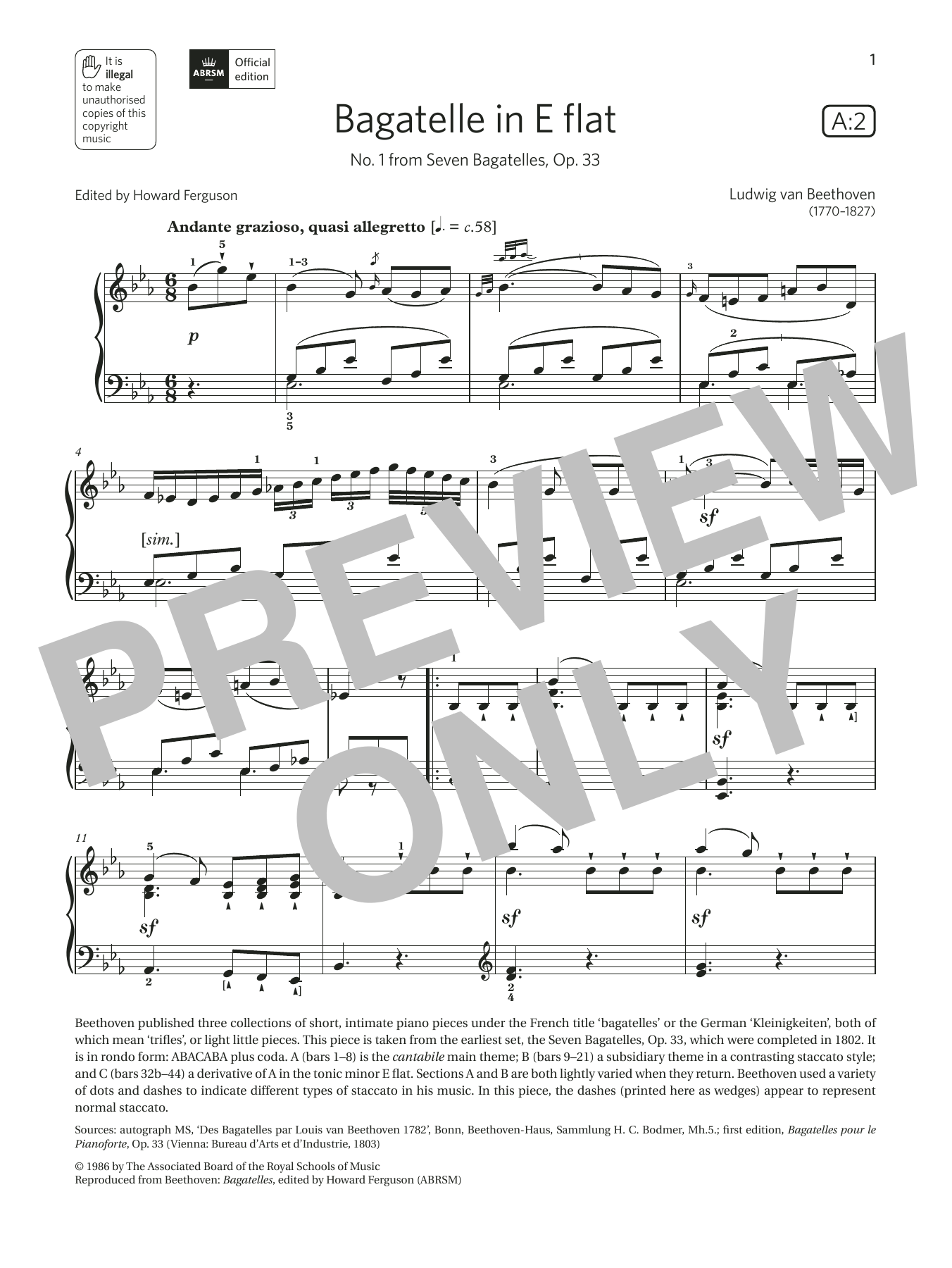 Bagatelle in E flat (Grade 7, list A2, from the ABRSM Piano Syllabus 2021 & 2022)