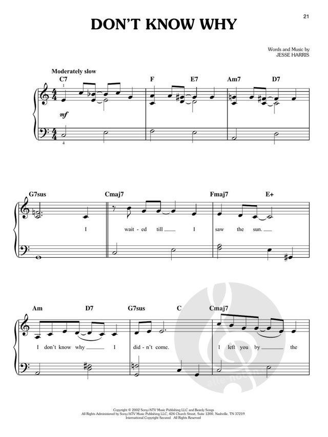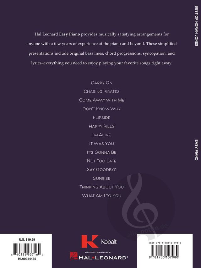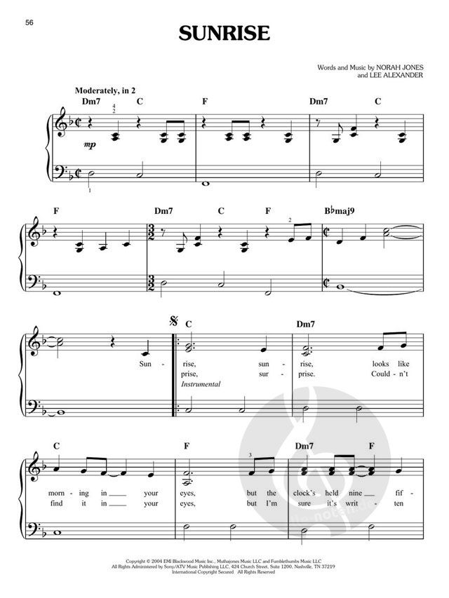 New pianists hoping to play the songs of Norah Jones will love this collection of 14 easy piano arrangements with lyrics.