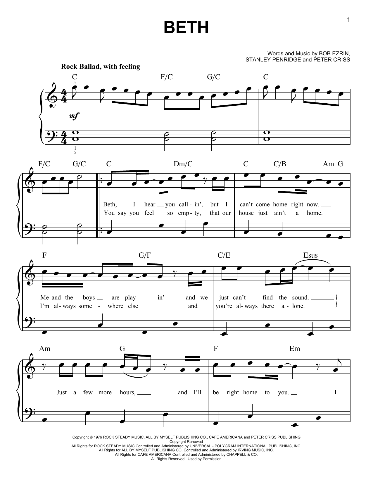 - Komponist Stanley Penridge, Bob Ezrin Peter Criss