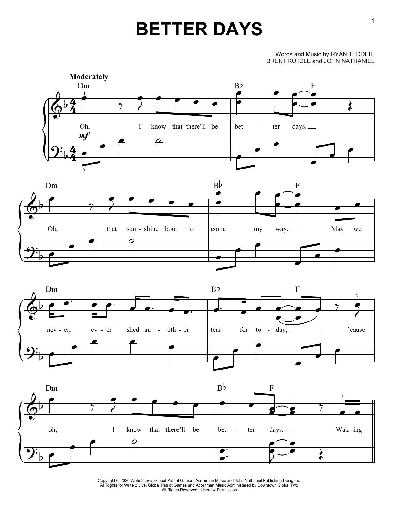 - Komponist Ryan Tedder Brent Kutzle John Nathaniel