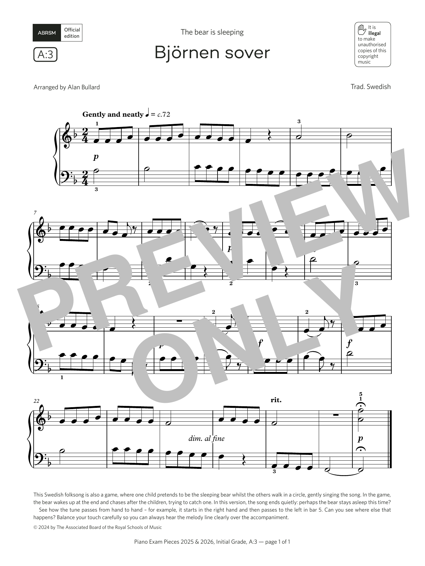 Bjørnen sover (Grade Initial, list A3, from the ABRSM Piano Syllabus 2025 & 2026)