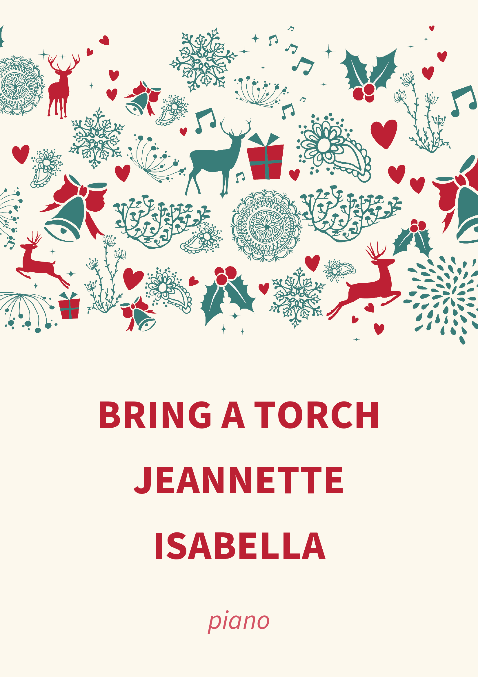 Dieses Notenheft enthält die Originalnoten zum Weihnachtslied "Bring A Torch Jeannette Isabella" für Klavier. Leichter Schwierigkeitsgrad in D-Dur.
