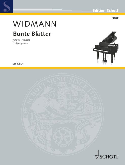 Nach einem frühen Mini-Stück für diese Besetzung sind diese Bunten Blätter mein erstes wirkliches Stück für zwei Klaviere. Es ist eine Sammlung höchst unterschiedlicher und vielgestaltiger Stücke und Formen geworden, vom Walzer bis zum Danse macabre, von einer Fanfare bis zu einer Zirkusparade. Dass die Uraufführungsinterpreten Arthur und Lucas Jussen Geschwister sind, darf und soll man spüren in einem neckisch-liebevollen Fangspiel, in dem die beiden Pianisten zuweilen absichtsvoll "aneinander vorbei" spielen. Die Sammlung wird durch ein Rätsel zu Peter Sloterdijks 75. Geburtstag komplettiert, ein kleines, sphinxenhaftes Stück für den Librettisten meiner Babylon-Oper. - Jörg Widmann