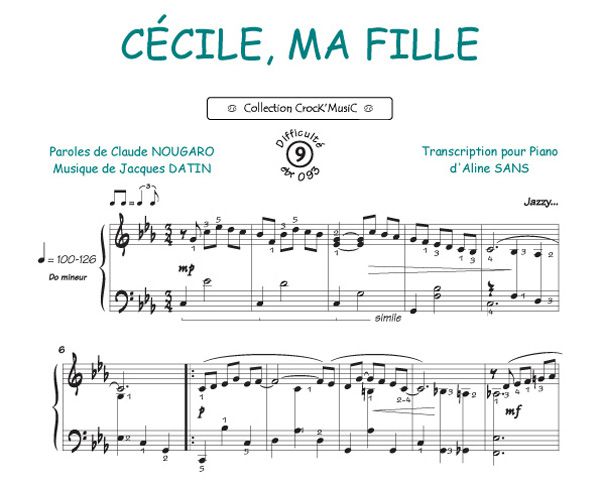 Diese Partitur stammt aus der Sammlung CrocK'MusiC, die aus Transkriptionen französischer Lieder für das Klavier besteht, begleitet von ihren Texten.