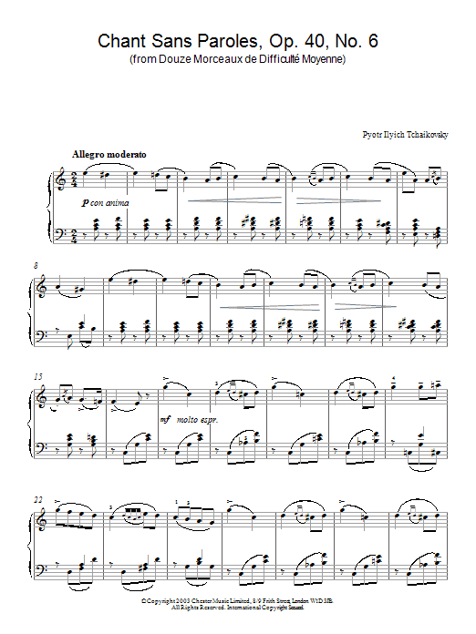 Chant Sans Paroles, Op. 40, No. 6