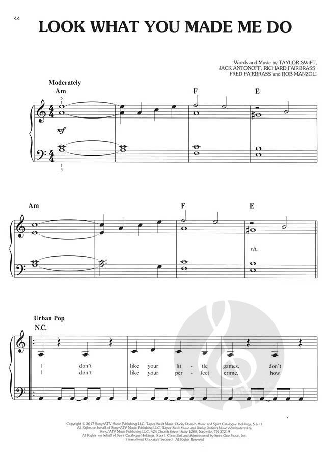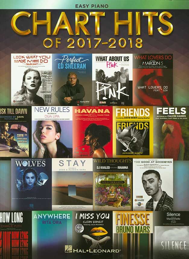 Ein großartiges Jahr für die Popmusik! Dieser Sammelband enthält 18 der größten Hits von 2017 bis 2018 in leichten Bearbeitungen für Klavier. Mit dabei aus dem Jahr 2017 sind Pinks 'What About Us', 'What Lovers Do' von Maroon 5, Dua Lipas 'New Rules' oder 'Look What You Made Me Do' von Taylor Swift. Das Jahr 2018 ist vertreten durch Charlie Puths 'How Long' und 'Finesse' von Bruno Mars.