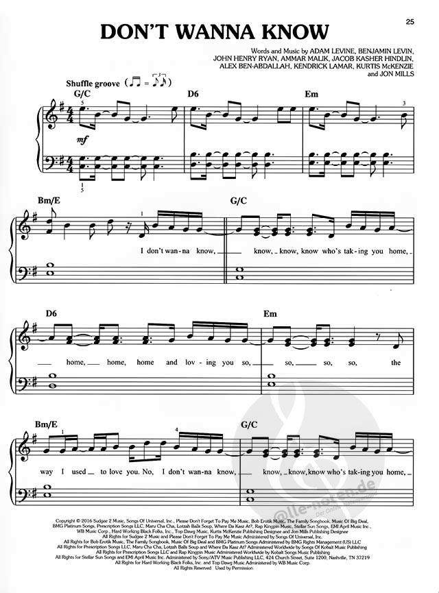 This compilation is packed with chart hits from some of 2016-2017's biggest artists from across Europe. All arranged in an easy Piano format, songs include:Cake By The Ocean by DNCE, Love Yourself By Justin Bieber, Treat You Better By Shawn Mendes, 24k Magic By Bruno Mars and more!