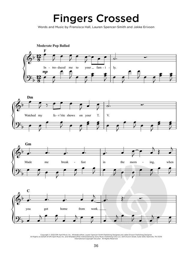20 massive hits from 2021-2022, specially arranged for easy piano with chord symbols and full lyrics. Includes 'Easy on Me', 'Heat Waves', 'Seventeen Going Under', 'We Don't Talk About Bruno', and many more!