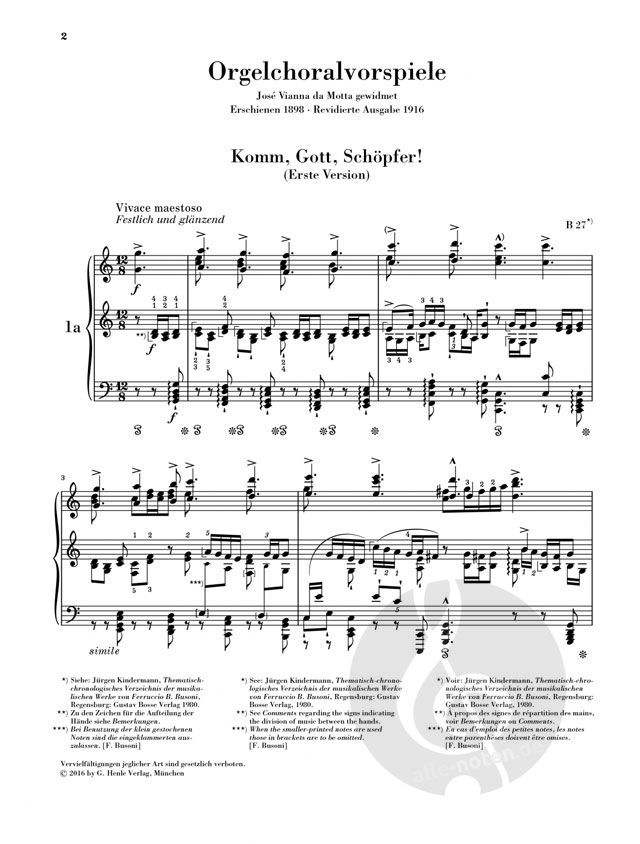 Wir bringen Busonis Fassung letzter Hand erstmals in einer modernen Urtextedition, versehen mit wertvollen Fingersatz-Spielhilfen von Marc-André Hamelin. Der Anhang enthält überdies als Erstveröffentlichung ein elftes Choralvorspiel, Busonis Übertragungsversuch von 'Aus tiefer Not'. Der Komponist selbst spricht im Hinblick auf den Vortrag von dessen sechsstimmigem Satz von einer 'äußersten Leistungsgrenze' - aber urteilen Sie selbst!