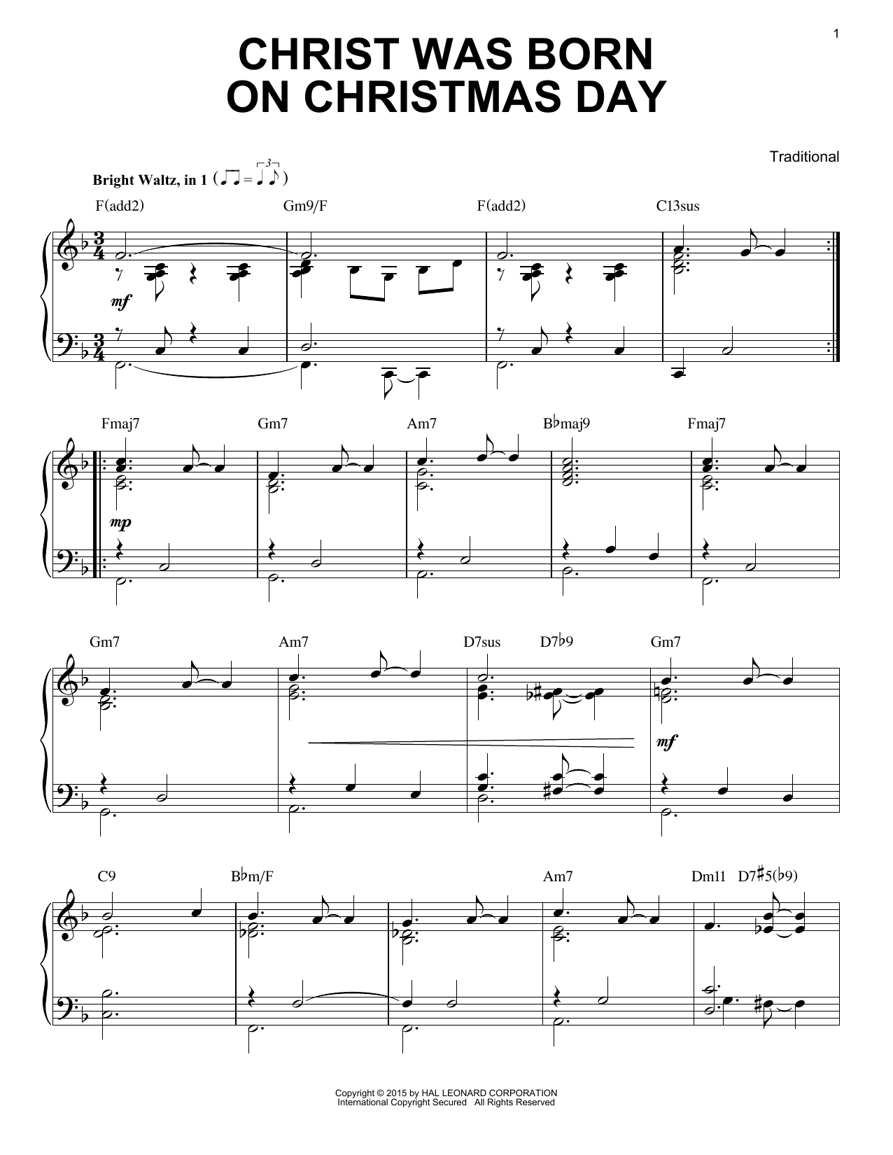 Christ Was Born On Christmas Day [Jazz version]