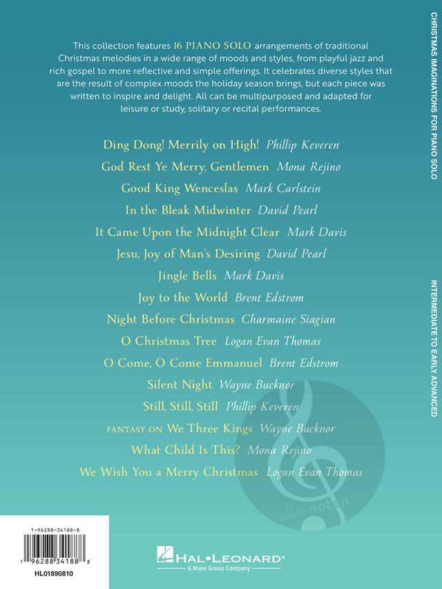 Feiern Sie die Weihnachtszeit mit Christmas Imaginations, einer fesselnden Sammlung von 16 traditionellen WeihnachtsSongs, die in einer Vielzahl von Stilen neu interpretiert wurden, von fröhlichem Jazz über reichhaltigen Gospel bis hin zu heiteren Präludien. Diese Sammlung ist für Pianisten der Mittelstufe bis hin zu fortgeschrittenen Pianisten arrangiert und lädt dazu ein, ein vielfältiges emotionales Spektrum zu erkunden, während geliebte Weihnachtsmelodien auf überraschende und fantasievolle Weise zum Leben erweckt werden. Ganz gleich, ob Sie sich auf ein Konzert vorbereiten, Ihr Weihnachtsrepertoire erweitern oder einfach nur aus Spaß an der Freude spielen, Christmas Imaginations wird Sie den ganzen Winter über inspirieren und verzaubern.