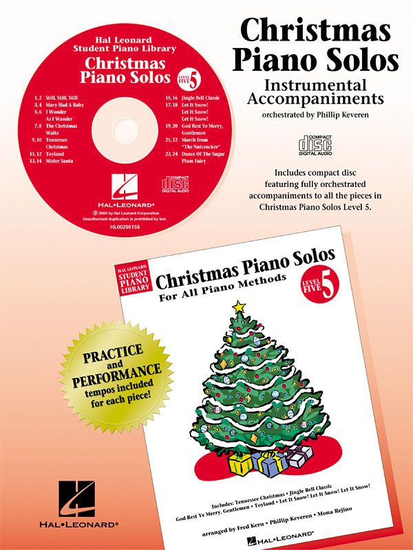 This compact disc correlates directly to the pieces in Christmas Piano Solos Level 5. All track numbers for use with the compact disc are clearly indicated in the book, and are listed on the actual CD as well. These fully-orchestrated accompaniments by Hal Leonard Student Piano Library method author Phillip Keveren are a delightful way to enhance students' lessons, and are a sure way to guarantee practice success. Whenever we have included CD accompaniments for any series within the Hal Leonard Student Piano Library. The CD format is as follows: each piece has two tracks. The first track is at a practice tempo with the solo piano part, and the second track is at a performance tempo without the piano solo part.