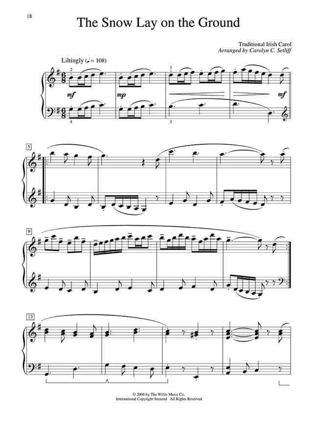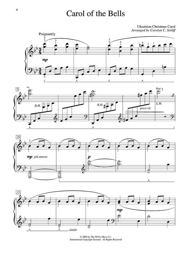7 Christmas classics arranged for recitals, church performances, or simply at-home entertainment, including: Carol of the Bells - Ding Dong! Merrily on High! - The First Noel - In the Bleak Midwinter - O Holy Night - Sing We Now of Christmas - The Snow Lay on the Ground.
