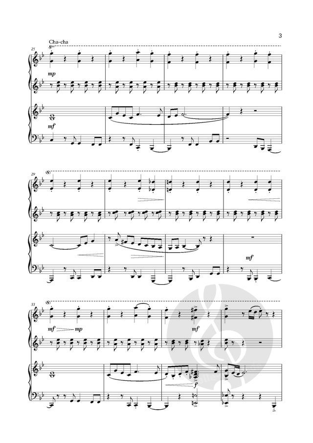First published in the book Grooves for Two (with CD), this Latin jazz piano duet combines the danzón, a traditional Cuban groove, and the cha-cha, with an optional improvisation section as bonus!