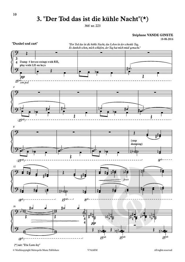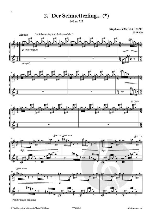On January 1st, 2016, Stephane Vande Ginste had an extraordinary intention: he planned to compose a 1-minute piece for piano every single day for the whole year. The result is an impressive collection of piano miniatures which - although contemporary - result in a variety of musical styles: apart from some experimental pieces, there are jazzy- and poppy pieces, more traditional 'etudes', polyphonic compositions and so on... The 366 pieces also tell various stories: from very emotional events like the terrorist attacks in Brussels over homages in honor of deceased artists (David Bowie,...) to birthdays and festive occasions,... . More than once, even poetry (Heinrich Heine, Anna Enquist, ..) or other pieces of art inspired Stephane to compose his daily one-minute piece. Every single composition originated from the 'here and now', and therefore capture the unfiltered feelings and emotions of that very unique moment in time: joy, enthusiasm, but also melancholy and sadness.