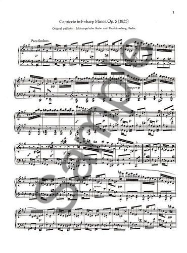 Mendelssohn's complete works for pianoforte solo are now contained in this two-volume republication of the outstanding Breitkopf and Hartel edition. Included in volume one are: 'Capriccio In F Sharp Minor Op. 5', 'Sonata In E Major Op. 6' and 'Rondo Capriccioso Op. 14'.