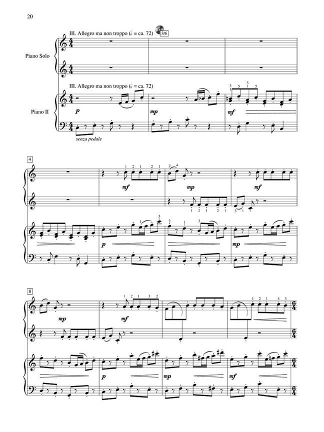 This C Major concerto is classically-inspired, and the outer movements recall Mozartean elegance intermingled with a dash of Haydn-esque humor. The second movement is warm and lyrical, and deeply inspiring. The concerto is perfect for students anxious to play (but not quite ready for) the daunting concerto repertoire. The packaging includes a 2nd Piano insert, as well as a Online Audio recording of Peskanov playing both the accompanying piano part and the solo piano part. NFMC choice 2008-2010.
