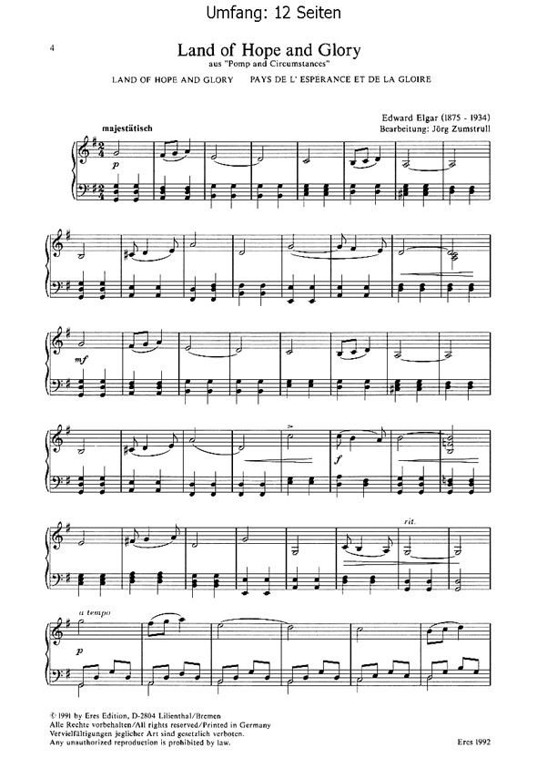 Erleichterte Klaviersätze berühmter Stücke, die Sie schon immer spielen wollten:Inhalt:1. Träumerei (R. Schumann) 2. Melodie in F (A. Rubinstein)3. Land Of Hope And Glory (E. Elgar)4. Thema nach Chopin6. Die ersehnte Pause (Zumstrull)7. Poem (Z. Fibich)8. Die Schreibmaschine (Zumstrull)