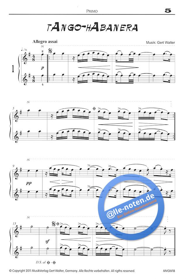 Gestatten? Tango, Bossa, Salsa & Co. stellen sich vor. Die Tanzmusik des 20. und 21. Jahrhunderts für den ersten Klavierunterricht im Fünf-Ton-Raum, vierhändig gesetzt. Dabei übernimmt der Klavierlehrer oder ein fortgeschrittener Schüler den Secondo-Part. Und das ist drin: Tango-Habanera, Tango-Conchita, Tango-Argentino, Bossa, Salsa, Rhumba, Calypso, Charleston, Beguine, Foxtrot, English Waltz, Slow-Fox, Reggae und Wave. Der Muntermacher mit Spassgarantie!