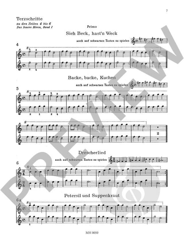 Das Innere Hören als Grundlage einer natürlichen Klavierspiel-Technik Spielbuch 1 Die Spielbücher mit vierhändigen Liedsätzen und täglichen Übungen sind als Begleithefte zu den Klavierschulen für den Elementarunterricht vorgesehen und können sehr gut als Ergänzung zu jeder Klavierschule benutzt werden. Insbesondere in direkter Anlehnung an das dreibändige Klavierschulwerk Das Innere Hören der Klavierpädagogin Beata Ziegler findet das Spielbuch seine ideale Ergänzung.