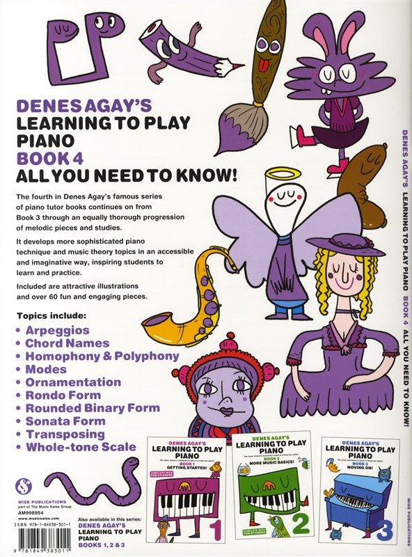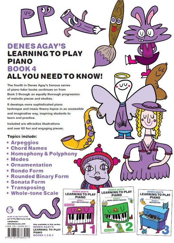 The fourth book in this new edition of Denes Agay's famous Piano tutor series for children continues on from Book Three through an equally thorough progression of melodic pieces and studies. It develops more sophisticated piano technique and music theory topics in an accessible and imaginative way, inspiring students to learn and practice. Included are attractive illustrations, colourful stickers and over 60 fun and engaging pieces. Topics include: