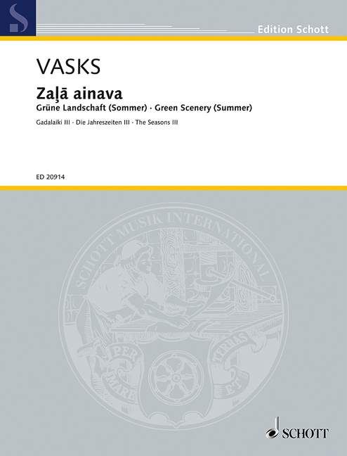 Zala ainava (Grüne Landschaft) ist der abschließende Teil des Zyklus Die Jahreszeiten, einer Sammlung für Klavier mit den Stücken Rudens muzika (Herbstmusik), Balta ainava (Weiße Landschaft) und Pavasara muzika (Frühlingsmusik). Natur in allen ihren Erscheinungsformen und die Beziehung des Menschen zu ihr spielt in Peteris Vasks Musik eine große Rolle. In Zala ainava reicht das Klangspektrum vom zarten pianissimo bis zu eruptiven Akkordballungen. So entstehen im Zuhörer akustische Bilder, die eine sommerliche Natur beschreiben.