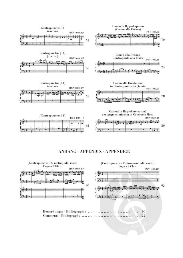 Bach musste die Kunst der Fuge bei seinem Tode unvollendet hinterlassen. Genau an der Stelle, an der die letzte Fuge abbricht, schreibt C. Ph. E. Bach in das Manuskript des Vaters: 'Über dieser Fuge, wo der Name B.A.C.H im Contrasubject angebracht worden, ist der Verfasser gestorben.' Unser Herausgeber Davitt Moroney bringt die Fuge mit 30 ergänzenden Takten zum Abschluss. Viel wurde darüber gerätselt, welche Besetzung für das Werk wohl zutreffend sei, zumal Bach die Einzelstimmen in Partituranordnung schreibt und keine Angabe zur Ausführung macht. Sicherlich lassen sich strenge Fugen in jedweder Besetzung spielen. Das ist auch von jeher gang und gäbe. Es ist aber doch auffällig, dass der Zyklus ohne weiteres auf dem Cembalo oder Klavier gespielt werden kann. Für die Aufführungspraxis müssen keinerlei Anpassungen vorgenommen werden: ein starkes Argument für das Tasteninstrument.