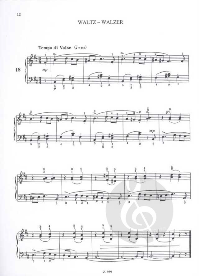 Die 18 kleinen, leichten Klavierstücke stammen aus der Klavierschule von Bartók-Reschofsky von 1913 und sind nicht nur überaus geeignete Übungen für Anfänger sondern kleine Meisterwerke von überaus elegantem und zeitlosem Charme.