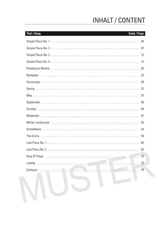 Nicht zu schwer komponiert, sind die Lieder variationsreich arrangiert, so dass man sie immer wieder spielen und hören möchte. Tempo- und Dynamikangaben sind bewusst variabel gehalten, damit jeder die Stücke für sich selbst entdecken und auf persönliche Weise interpretieren kann.