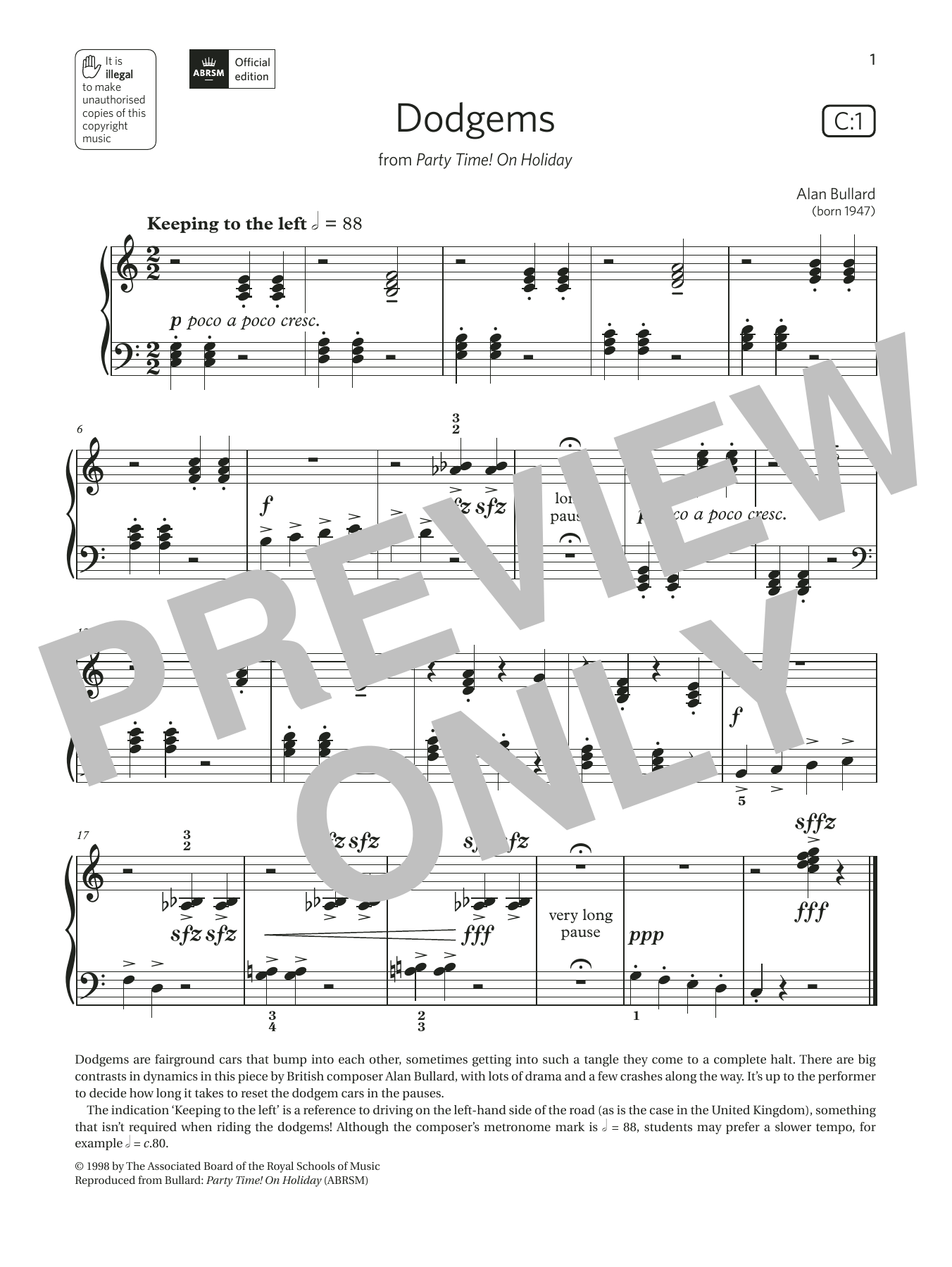 Dodgems (Grade Initial, list C1, from the ABRSM Piano Syllabus 2021 & 2022)